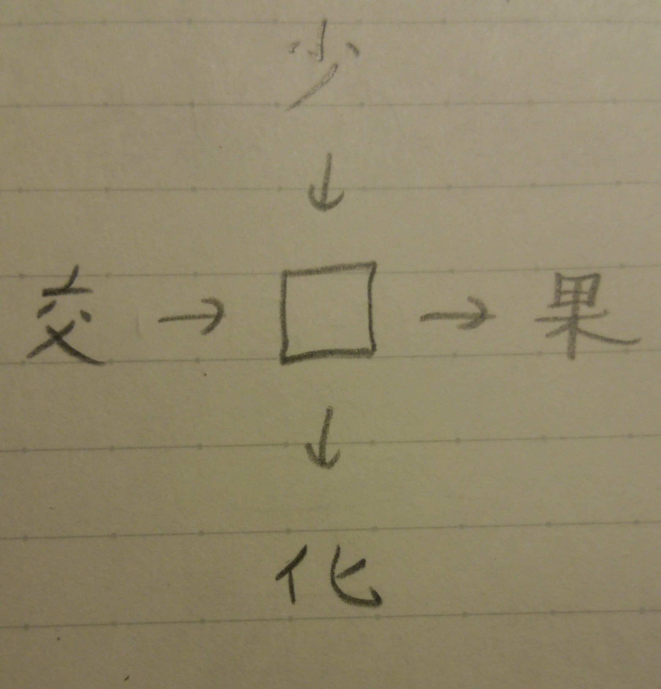 普通この構図の時は、真ん中に漢字を当てはめて、上下左右に二字熟語が出来るようにするのですが、今回はそれを少しひねっています。